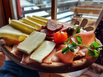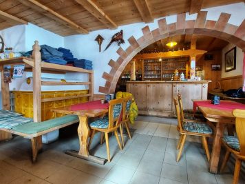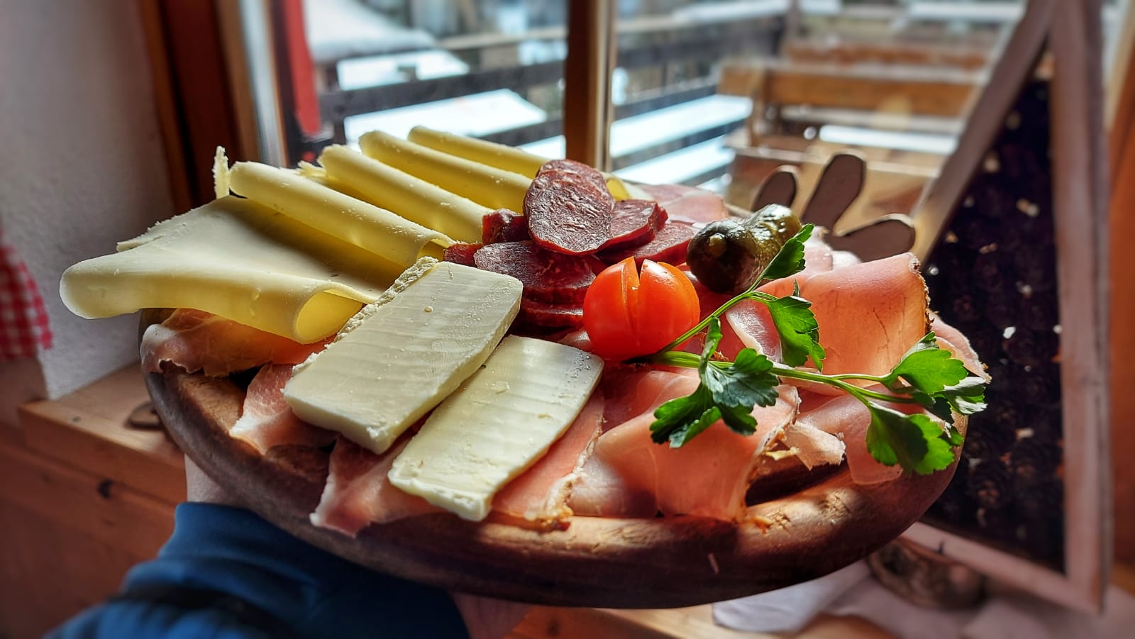 La malga, piccola ma molto carina al suo interno, offre una buona opzione per un pranzetto o, come nel nostro caso, un aperitivo con tagliere di affettati e formaggi.