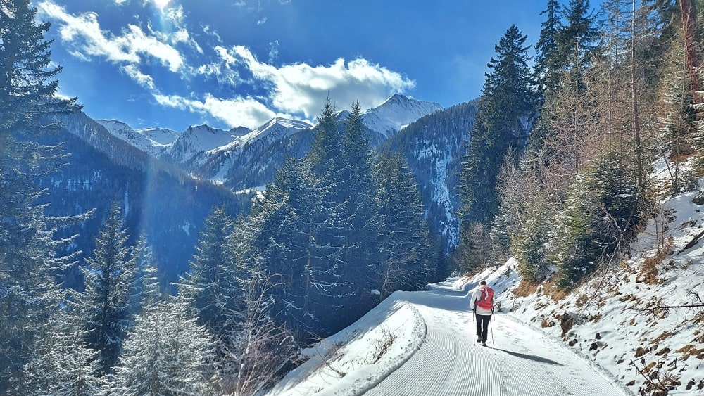 Da qui dopo un primo tratto su strada asfaltata, una volta superati lo Skilift Weissenbach alla vostra destra e i campi sportivi alla vostra sinistra si percorre la stradina che corre parallelamente al torrente fino a raggiungere il centro del paese e il punto di partenza dell’escursione.