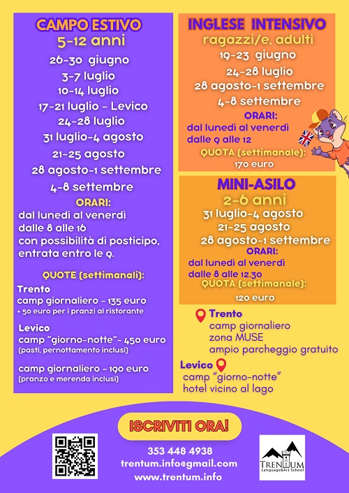 La scuola Trentum si trova nel centro di Trento, in una zona facilmente accessibile con un ampio parcheggio gratuito nelle vicinanze. A fare da cornice la bellissima zona verde del Parco delle Albere. La struttura dispone di un’ampia sala con area giochi e due aule spaziose dotate di tutto il materiale didattico necessario. Qui vengono organizzati durante tutto l’anno corsi di INGLESE e di ARTE.