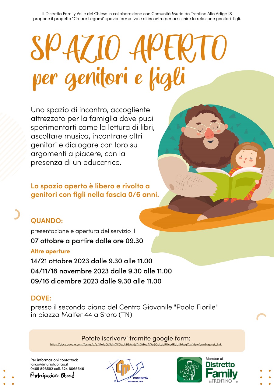 Uno spazio di incontro, accogliente e attrezzato per la famiglia. Uno spazio dove è possibile leggere libri, ascoltare musica, incontrare altri genitori e dialogare con loro su argomenti a piacere. Sarà sempre garantita la presenza di un’educatrice. Lo spazio aperto è libero e rivolto a genitori con figli nella fascia 0/6 anni