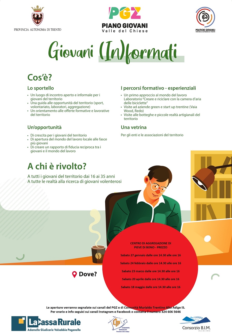 Dove: presso il centro di aggregazione giovanile di Pieve di Bono (QUI maggiori info)- Quando: sportello mensile attivo di sabato con orario 14.30-16.00.
