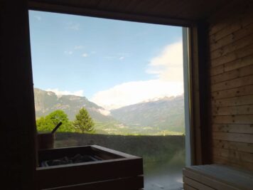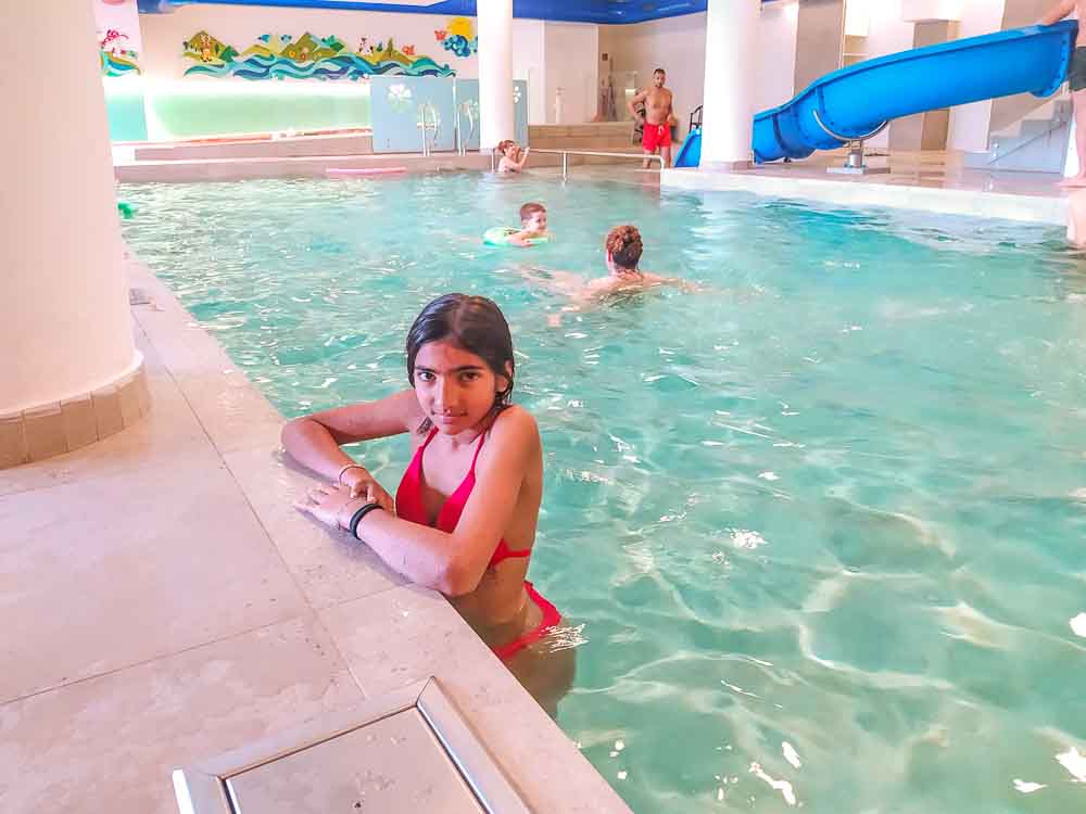 Per quanto riguarda gli spazi comuni i bambini adoreranno la bellissima piscina completa di scivoli e giochi d’acqua per i più piccini. Sempre in questa zona c’è una splendida sorpresa per mamma e papà (e nonni e zii: noi abbiamo visto tante famiglie al completo!): una sauna panoramica con vista verso la Val di Fassa. Niente di meglio per 15 minuti di relax tra una nuotata e l’altra… ed è aperta fino alle 20.30!
