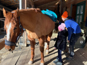 Clelia, con un po’ di timore, si avvicina alla staccionata e li conquista con una carota. Nel frattempo Federica ci racconta con passione il suo lavoro, come si accudiscono i cavalli e le varie attività che si svolgono al ranch.