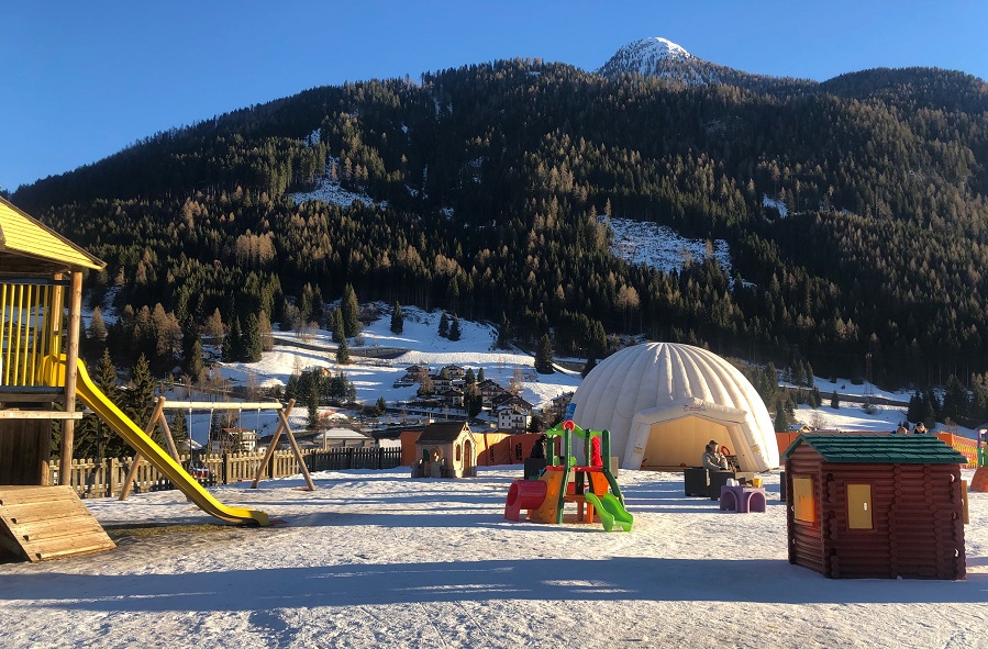 Una seconda zona è invece organizzata con un parco giochi, dove i più piccini potranno divertirsi instancabilmente oltre che con la neve anche con scivoli, casette, tunnel e tanto altro. Visti i piccoli ospiti non può mancare una zona solarium per mamma e papà, ma nemmeno una casetta riscaldata con servizi igienici e distributori di snack e bevande. Completa l’offerta un accogliente chalet che ospita il miniclub con servizio di assistenza. Un vero paradiso per i bambini, che potranno incontrare tanti nuovi amici e giocare in sicurezza.