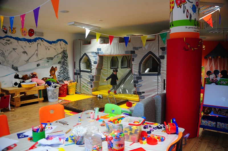 Gli spazi sono ampi e colorati: tanti tavolini dove svolgere attività manuali, angoli morbidi con una piccola biblioteca per i piccini, un lungo trenino in legno che contiene i giochi e i materiali per i laboratori e dulcis in fundo un grande castello gonfiabile con tanto di scivolo internno! Il Folgarida kinderland è dotato anche di spazi per il gioco sia interni che esterni ed è sempre pronto ad accogliere i bambini con qualsiasi condizione meteo.