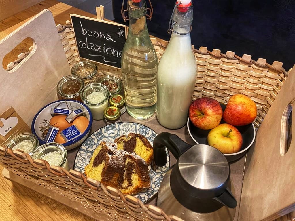 La maggior parte dei prodotti viene preparata home made o proviene dal maso… e che bello ricevere il cesto in camera e cominciare la giornata con una colazione in assoluto relax!