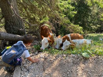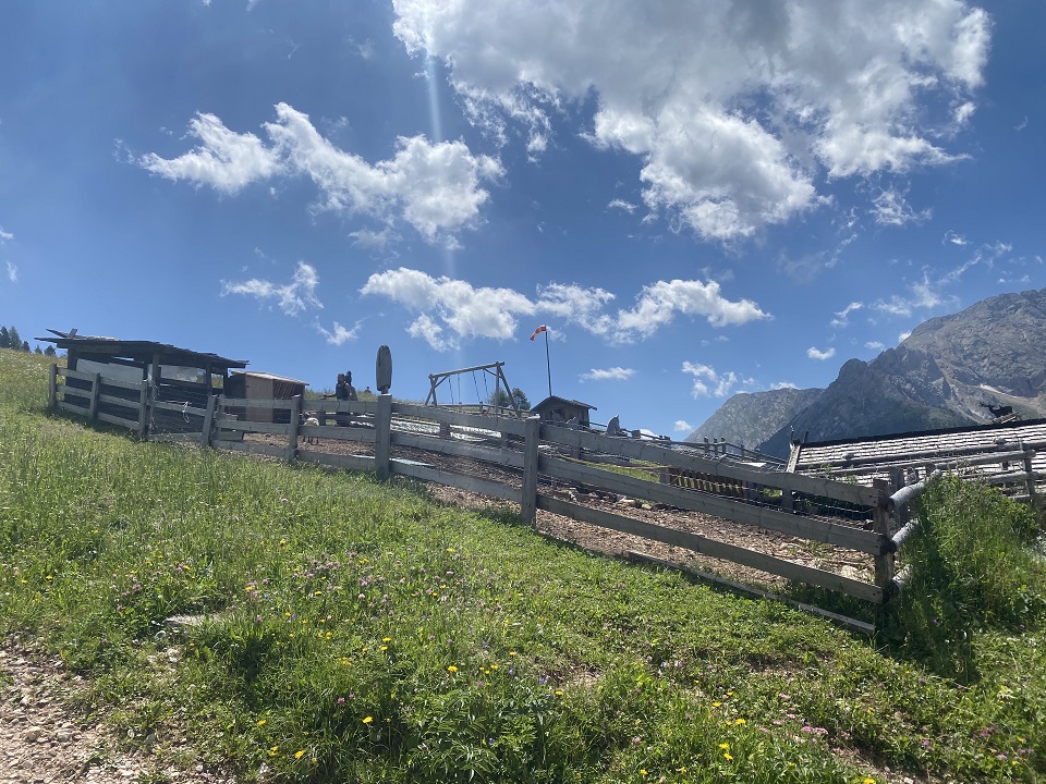 - arrivare in una ventina di minuti con facile passeggiata (anche con passeggino da trekking alla Malga Messnerjoch (QUI il nostro racconto partendo da Passo Nigra) con parco giochi e piatti tipici.
