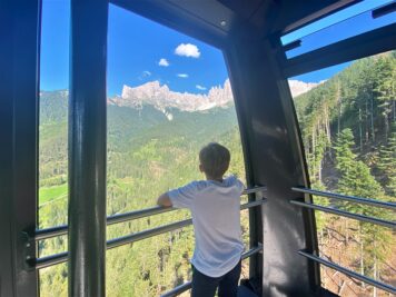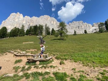 - Continuare con la telecabina fino a quota 2337 metri dove si trovano il Rifugio Coronelle e il Laurins’ Lounge (perfetti per mangiare) e proseguire sul sentiero Hirzel fino al Rifugio Paolina. Si tratta di un’escursione non particolarmente impegnativa, ma consigliata con bambini un po’ grandicelli, abituati a camminare, o con lo zainetto per i più piccoli. Vi regalerà un panorama meraviglioso a 360°.