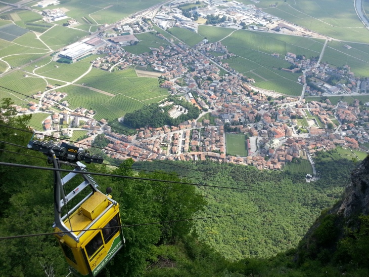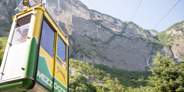 La funivia è piccola, 7 passeggeri al massimo, di un bel colore giallo e verde. Mentre si sale potete ammirare tutta la Valle dell’Adige in un colpo solo. Il viaggio dura solo 3 minuti e copre un dislivello di 620 metri. Arrivati lassù si respira un’altra aria. Poche case, zero macchine, tante passeggiate.