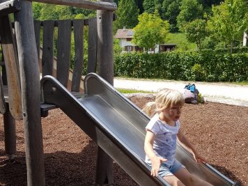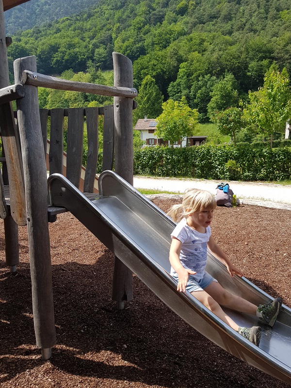 Non solo attrazioni per temerari: sul Monte di Mezzocorona troverete anche tanti prati verdi dove distendervi per un pic-nic, stradine dove passeggiare con il passeggino e, per i bimbi, anche un bel parco giochi.
