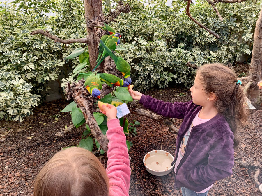 Chiudiamo il giro e ci ritroviamo alla voliera dei pappagalli Lori, dov’è possibile entrare. Un tripudio di colori volteggia intorno a noi, che bellezza! Abbiamo avuto l’occasione di assistere e di provare a dargli da mangiare (foto di copertina): è stata un’esperienza unica. L’imbeccamento avviene due volte al giorno: alle ore 11.00 e alle ore 15.00.