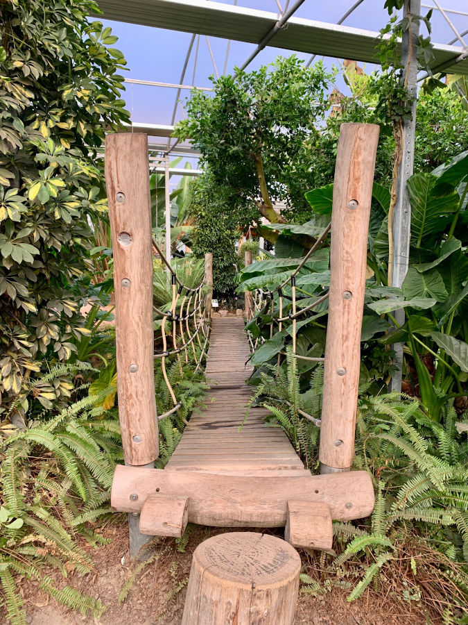 A circa metà cammino c’è inoltre un ponte sospeso che conduce in un’area dedicata ai bambini: una rilassante amaca, un percorso di equilibrio e una sabbiera che nasconde pietre preziose (attività a pagamento). Ma aguzzate la vista: tra le foglie si avvistano alcuni animali della giungla.