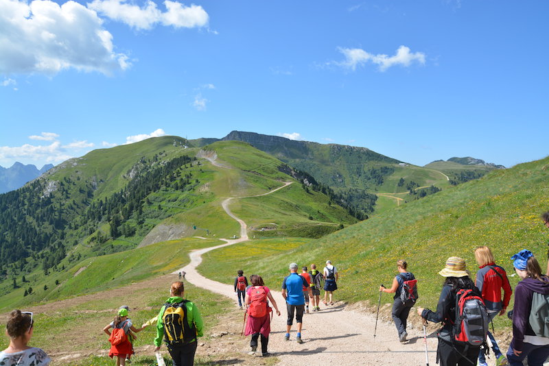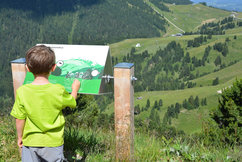 In un’ora e mezzo, escluse le soste alle stazioni tematiche che incuriosiranno tantissimo i piccoli, godrete di una bella passeggiata che vi porterà dalla partenza (proprio sotto il Rifugio Baita Gardonè) in cima al dosso a forma di cappello (ecco perchè Dos Capél) da cui avrete l’opportunità di ammirare tra le cime più belle delle Dolomiti e, in lontananza, persino le Dolomiti di Brenta (molto bello il punto panoramico poso sotto la stazione della seggiovia da cui si vede il Brenta, ma anche il Bondone e la Paganella).