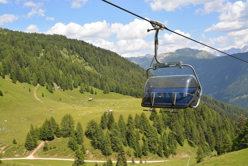 Con la telecabina, che si prende alla stazione dello Ski Center Latemar dopo l’abitato di Predazzo, si arriva alla stazione Gardonè e si prosegue con la seggiovia fino al Passo Feudo da dove parte il Geotrail.