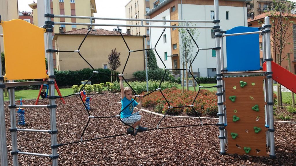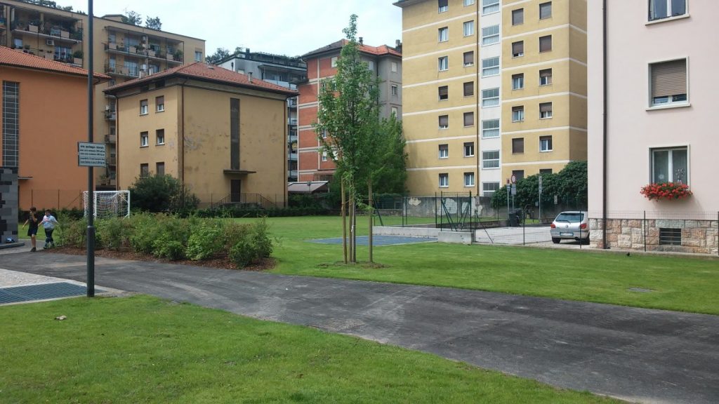 Il parco alle ex Caserme Duca d’Aosta è un punto di riferimento per le famiglie della zona lo si capisce dal via vai di bambini che si vede passare anche di mattina presto. Il parco è molto arioso con grandi spazi verdi, anche se l’ombra è assicurata dai maestosi alberi disseminati nel prato. Un giro sull’altalena (è presente anche un comoda altalena per disabili), una discesa sullo scivolo…