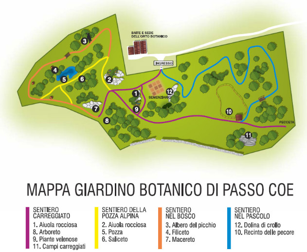 Situato nel cuore dell’altopiano di Folgaria, a 1610 metri, in un’ampia radura di 3 ettari alle pendici del monte Maggio, il giardino botanico alpino di Passo Coe è una straordinaria vetrina per stimolare la conoscenza del ricco patrimonio floristico spontaneo. Le piante crescono in rupi e roccere, prati e pascoli, boschi di conifere, cespuglieti, pozze d’alpeggio e ghiaioni, inserite nel loro habitat naturale di crescita. Vivaci macchie di colore sullo sfondo verde di prati e boschi richiamano l’attenzione del visitatore: le fioriture si alternano da fine primavera all’autunno.