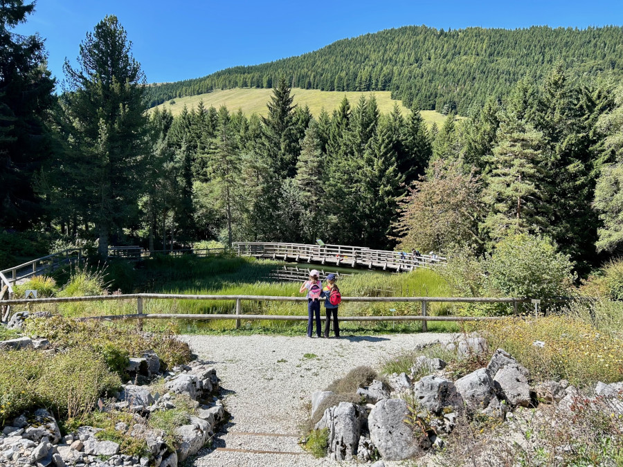Un ambiente estremo, fragile ed unico, che si snoda tra aiuole rocciose, laghi, torbiere, praterie fiorite e boschi. Noi abbiamo fatto una bellissima visita guidata per voi, ma si può fare anche in completa autonomia. Dall’estate 2025, inoltre, la visita in autonomia diventa ancora più coinvolgente per i bambini grazie al taccuino dell’esplorazione! Richiedi in cassa il kit (al costo di 3 euro): zaino in spalla e parti alla scoperta del Giardino Botanico! Giochi e prove da superare, cerca i buchi dei picchi, ricrea una preparazione officinale e scopri piante, animali, rocce e tutti gli ambienti del giardino in modo creativo e divertente.