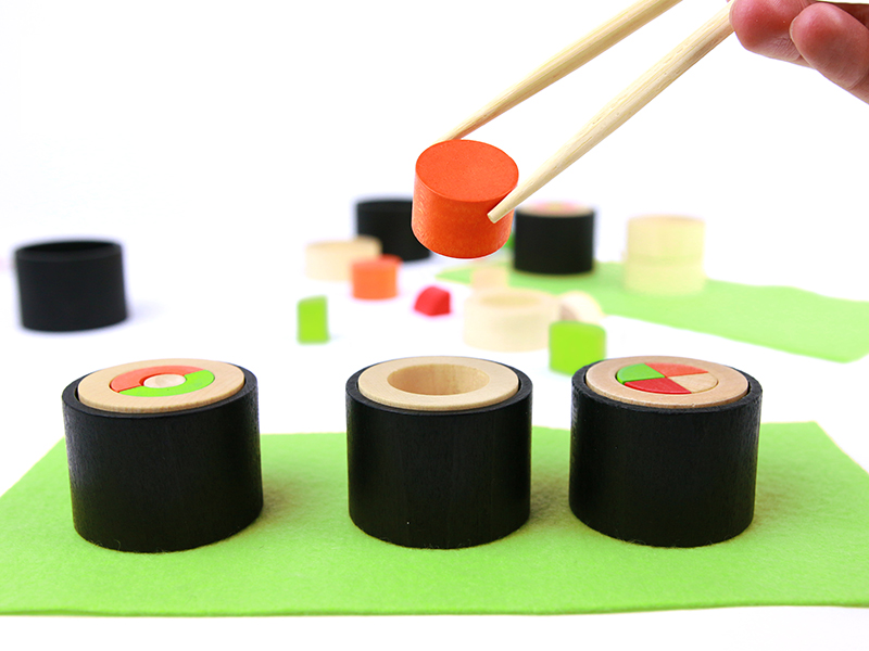 Tutte queste qualità sono già molto importanti per capire il perché Kidsonthetree abbia scelto proprio questi prodotti in rappresentanza dei giochi di abilità e ingegno, ma si aggiunga anche quanto già detto negli articoli precedenti sui marchi che producono questi articoli. Vi ricordate Milaniwood? Il marchio nato nel 2002 dall’azienda Tamil specializzata nella produzione di componenti di legno, tornitura e micro tornitura di cui vi abbiamo parlato illustrandovi una selezione di giochi di comunicazione, tra cui i Papussi per citarne uno? Ecco, la stessa Milaniwood firma i primi due giochi di questa nuova selezione legata all’abilità, ispirandosi al cibo giapponese e creando giochi di design degni di nota.