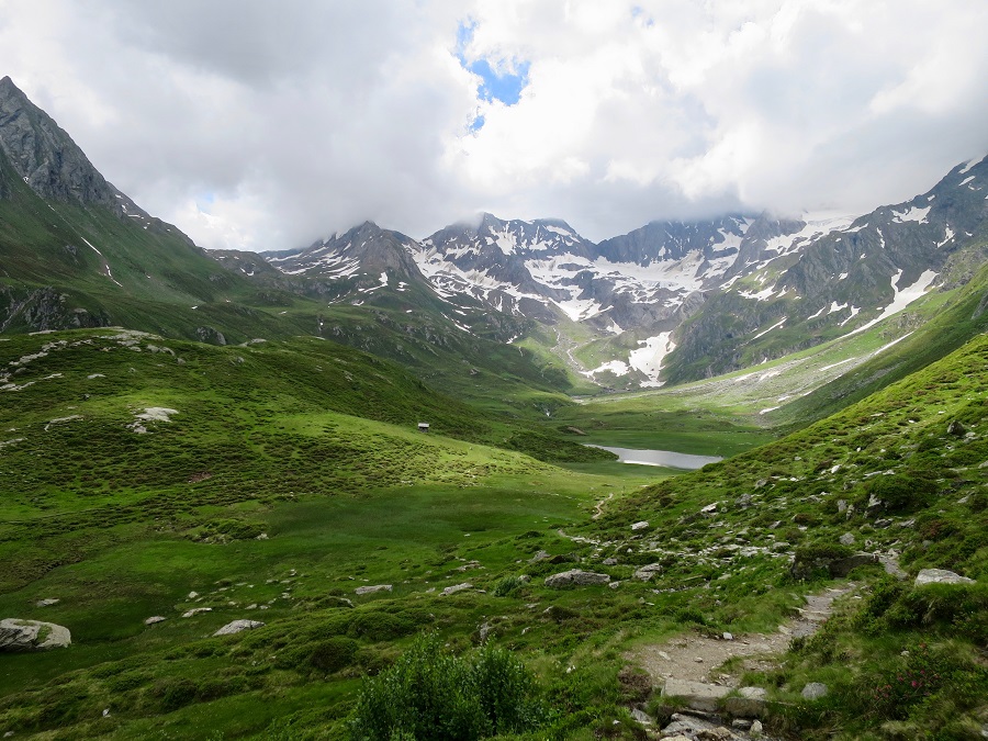 Attraversiamo un torrente e riprendiamo la salita che questa volta diventa un po’ più impegnativa. Dopo circa 50 minuti dalla malga raggiungiamo la nostra meta, il Seeber See situato a 2052 metri. Si tratta di un piccolo ma affascinante lago di montagna nelle cui acque si specchiano le cime innevate del Tessa e il verde dei prati circostanti.