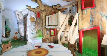 Nel prato ci sono anche dei giochi: scivoli e casette per i più piccoli e altre idee carine!