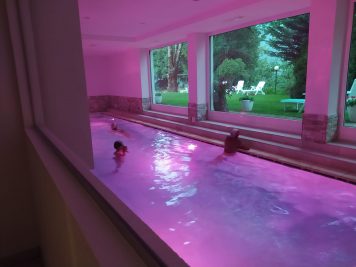 L’hotel è dotato di una SPA con lettini per il relax, bagno turco, sauna finlandese, bio sauna e docce aromatiche e di una piscina davvero bella, con effetti cromatici, zona idromassaggio e soprattutto grandi vetrate che si affacciano sul curatissimo giardino esterno, al quale si può accedere direttamente dalla piscina e dove ci si può rilassare dopo una rigenerante nuotata sui lettini prendisole.