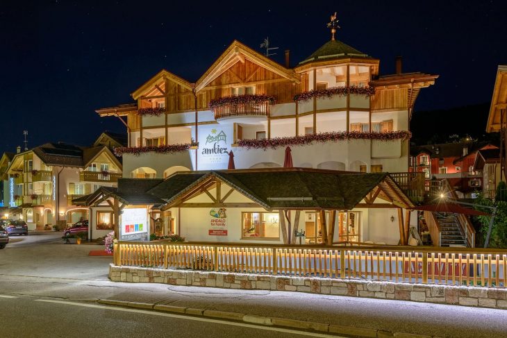Anche per gli amanti della cucina qui la proposta è intrigante: potranno assaporare le settimane enogastronomiche e le “cene tipiche al rifugio alpino”, potranno gustare i raffinati e autentici sapori del Trentino abbinati ad un buon bicchiere di vino. Naturalmente in un luogo così “family friendly” non mancano specifici menù per chi ha esigenze particolari: per celiaci ma anche per chi soffre di intolleranze alimentari e menù per i piccoli ospiti. Tante le attività all’aria aperta organizzate per loro sia in estate che in inverno e non solo: intrattenimenti, giochi, tornei e spettacoli adatti ai più piccoli. Non solo certificata dal marchio Family in Trentino, garanzia di sicurezza, professionalità e di mille attenzioni dedicate ai piccoli ospiti, ma anche “Italy Family Hotels”. All’Ambiez i bambini hanno a disposizione ambienti accoglienti, servizi efficienti e personalizzati, un mini club e spazi gioco attrezzati, animatrici esperte ed una ristorazione speciale.