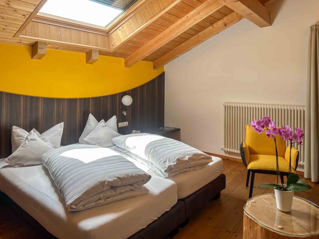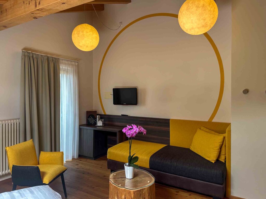 Per gli adulti c’è la sauna e una deliziosa stanza relax con i letti di una volta. Ho amato molto questo posto, così come la stube in legno che rappresenta la parte più antica della casa. Un hotel attento anche alla sostenibilità e al minimo impatto ambientale, con bottiglie in vetro, zero utilizzo di plastica e altre buone pratiche che ci piacciono sempre.