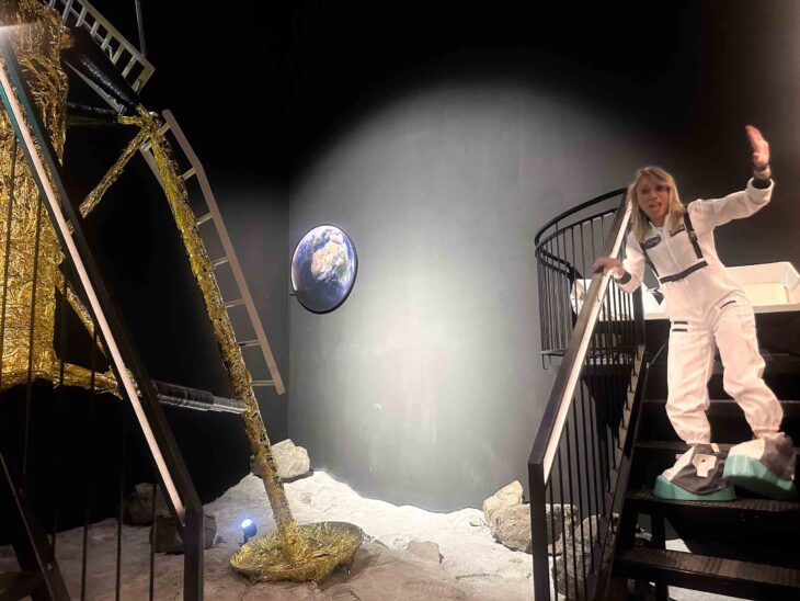 E questa struttura ho avuto l’idea geniale di attrezzare una stanza alta ben sette metri dove è stato ricostruito in scala reale il modulo atterrato sulla luna nel 1969. Un lavoro che ha appassionato il proprietario Roland (e la sua bella famiglia), così come gli artigiani del posto che hanno realizzato un vero e proprio capolavoro.