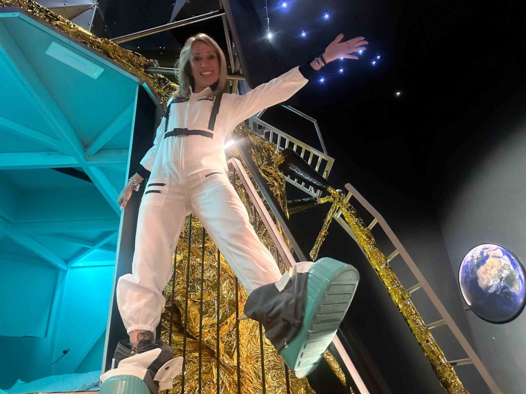 Per i più piccoli c’è anche un costume da astronauta, maxi scarpe comprese, che permette di fare qualche scatto memorabile.