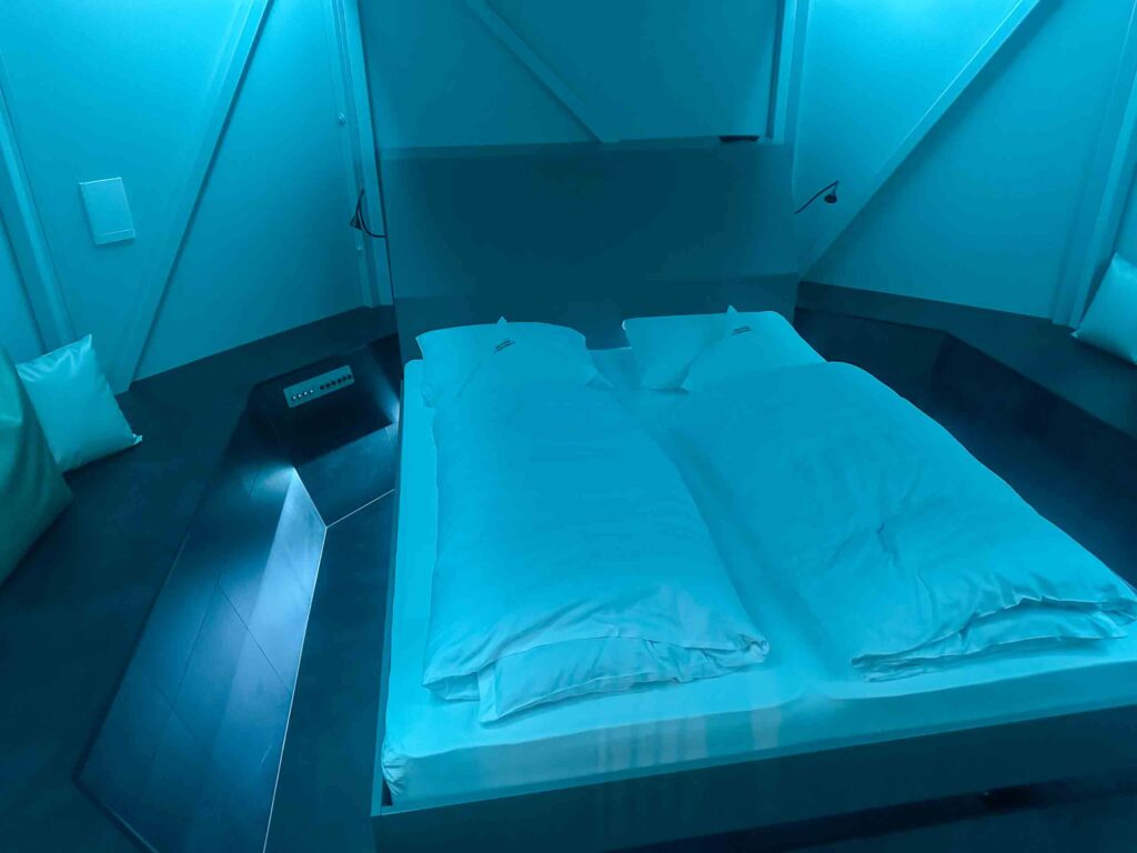 Consigliato fermarvi qui una notte (tra l’altro si dorme benissimo, sia per l’oscurità che per il silenzio), e poi di spostarvi in un’altra delle camere dell’hotel, che è davvero delizioso e dotato di tutti i comfort. La stanza con la navicella spaziale non ha infatti balconi e finestre.