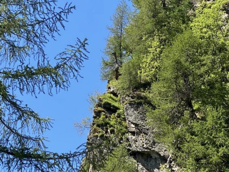 Dopo un’altra oretta abbondante, (considerando le varie soste) si arriva a Malga Prà di Saent, a quota 1785 metri, dove potete riprendere fiato ammirando il paesaggio incantevole e fare il pieno di energie necessario per poter affrontare nel migliore dei modi la fantomatica “scalinata“: 700 scalini in pietra e radici, un percorso lungo un chilometro e mezzo circa, con un dislivello di 610 metri. Per percorrerlo vi servirà all’incirca un’ora e mezza. La bellezza e la tenacia di questi larici, cresciuti a quasi 2000 metri di altitudine, in condizioni difficili, su un terreno impervio ed esposto alla forza degli agenti atmosferici, vi lasceranno increduli.