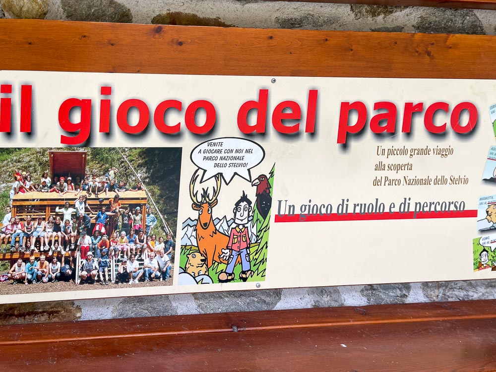Le attività compiute lungo il percorso permettono di conoscere diversi materiali: il ferro, l’aria, la pietra, il legno e l’acqua. I giocatori si muovono calandosi nelle vesti degli animali che abitano nel Parco Nazionale dello Stelvio come il cervo, la marmotta, l’aquila e l’uomo. Sollecitando la fantasia con le informazioni raccolte su schede e bacheche, imparano divertendosi ad osservare e conoscere aspetti importanti di questa bellissima area naturale protetta.