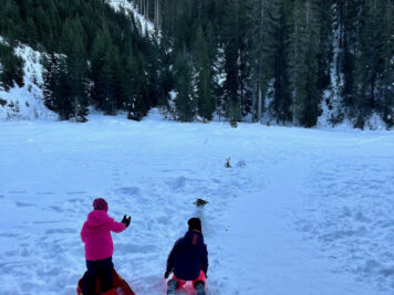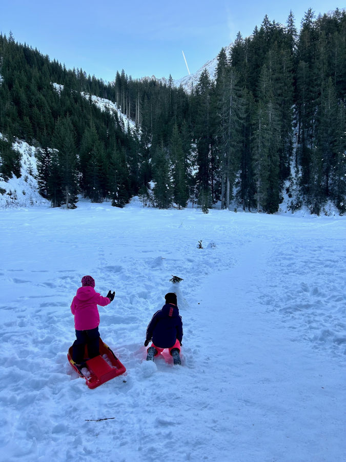 Se avete bimbi non molto allenati a camminare o vi spaventano i chilometri dell’escursione, potete portare con voi la slitta o il bob e riuscirete a trainarli per quasi tutto il tragitto. Ovviamente deve aver nevicato da qualche giorno, ma è un valido supporto per i bambini che oltre a riposare potranno divertirsi su brevi pendii.
