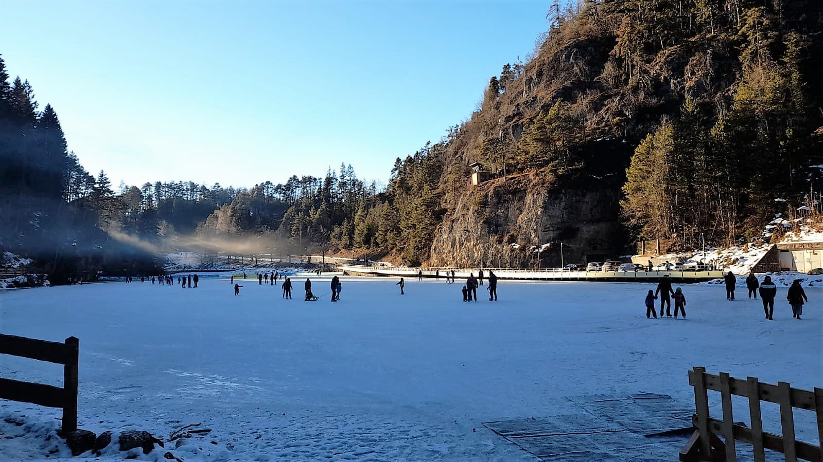 Pattinare sul ghiaccio è la vostra passione? Non possiamo darvi torto: sfrecciare sui pattini circondati dalla bellezza della natura non ha prezzo. E la bellezza non manca certo quando si parla del Lago Smeraldo. Questo piccolo bacino artificiale circondato dal bosco è famoso per le sfumature delle sue acque la cui superficie, in inverno, ghiaccia, rendendo possibile pattinare.