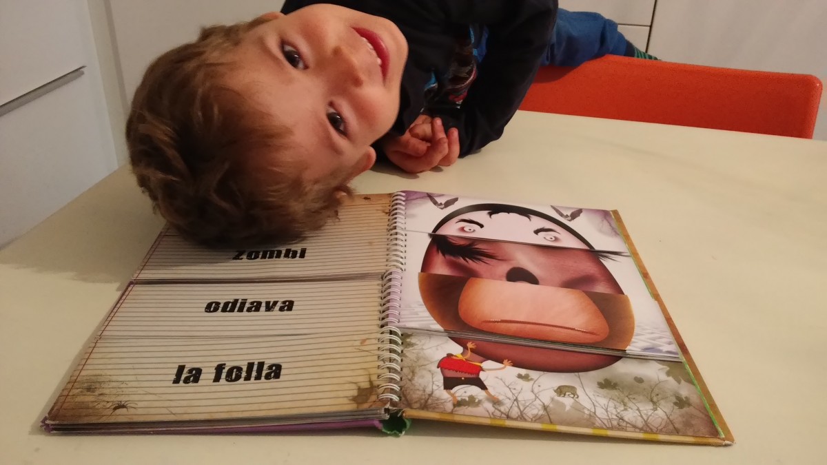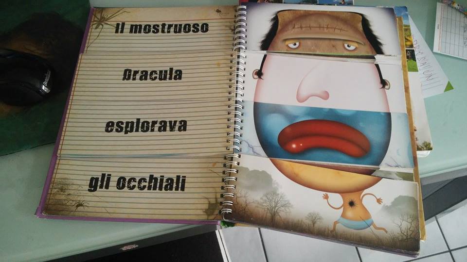 Cos’ha di speciale? E’ un libro diviso in 4 segmenti ed in ognuno c’è disegnata una parte del viso del mostro (occhi, naso, bocca e mento) aprendo il libro a caso… si inventano nuovi e spaventosi mostri!