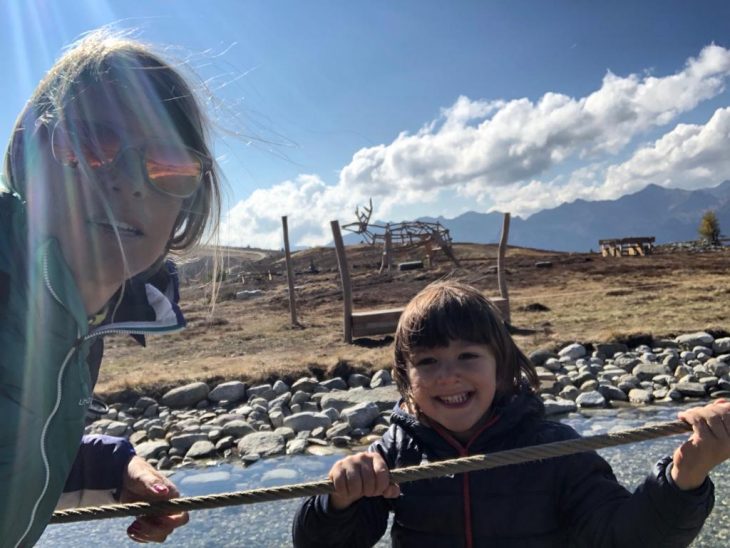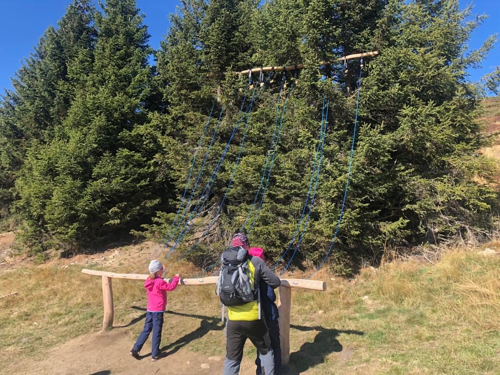 Le installazioni del nuovo parco avventura (che in realtà è un percorso con diverse postazioni di intrattenimento) si snodano sulla montagna poco sopra. Ad un quarto d’ora di cammino (pianeggiante) troverete i campanelli nel bosco, tutti da suonare con le corde individuando simpatiche melodie.