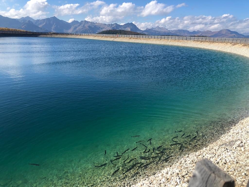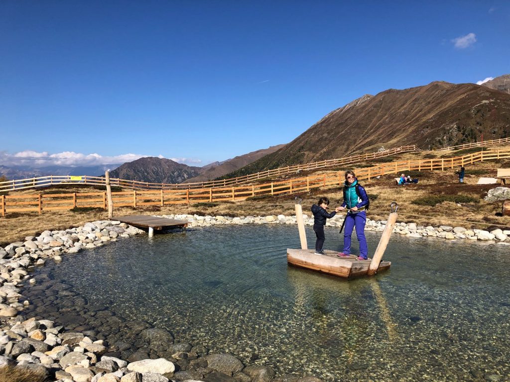 Ancora avanti, tenendo la destra, prima il bacino usato per l’innevamento artificiale (non è una postazione gioco, ma i tantissimi pesci attireranno l’attenzione dei bambini!)…