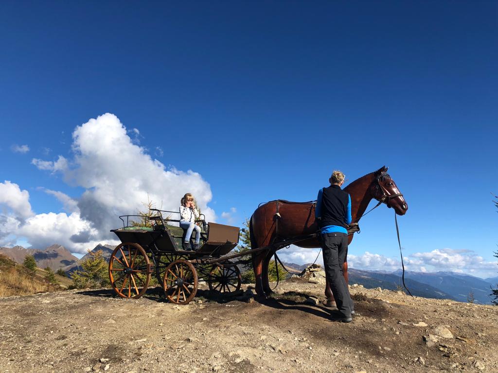 Noi abbiamo mangiato velocemente, perché volevamo andare a visitare il parco, che si snoda sotto e sopra il rifugio. Abbiamo incontrato un cavallo con la carrozza, che i bambini possono cavalcare lasciando libera la fantasia.
