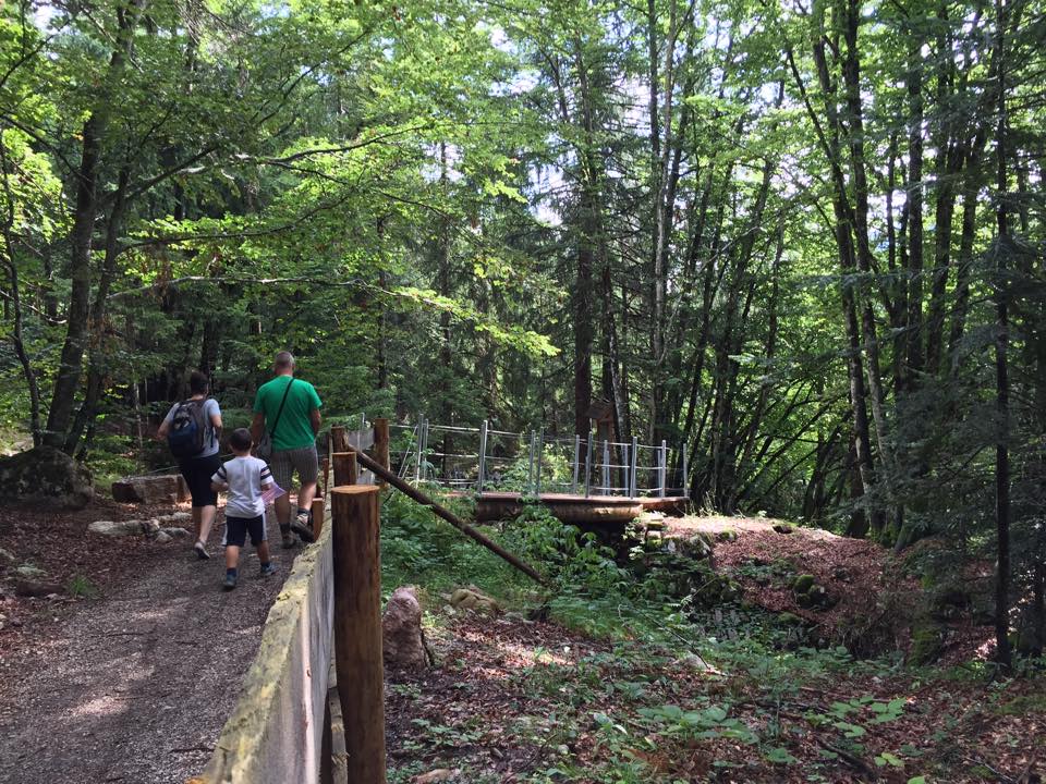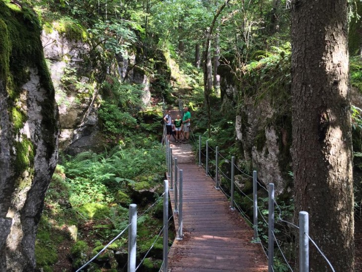 La cosa bella di questo sentiero che potete percorrere in circa quaranta minuti andata e ritorno é il fatto che é stato “attrezzato” per poter mostrar la meraviglia della geologia che caratterizza questa particolare zona: ponticelli di legno sospesi sopra forre scavate nelle rocce, sovrastate da grandi ammassamenti rocciosi che fanno pensare ai giganti.