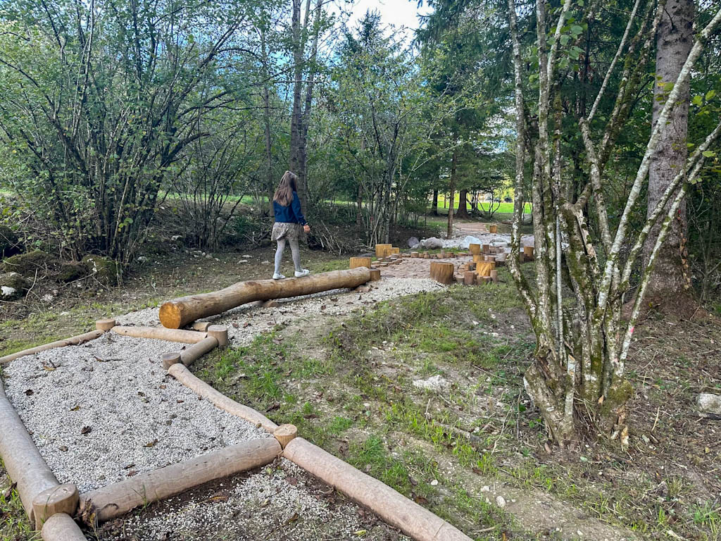 Infine c’è il Cammino materico, percorso che vede sul terreno diversi materiali: sabbia, sassi e legno, da sentire con i piedi nudi per vedere l’effetto che fa.
