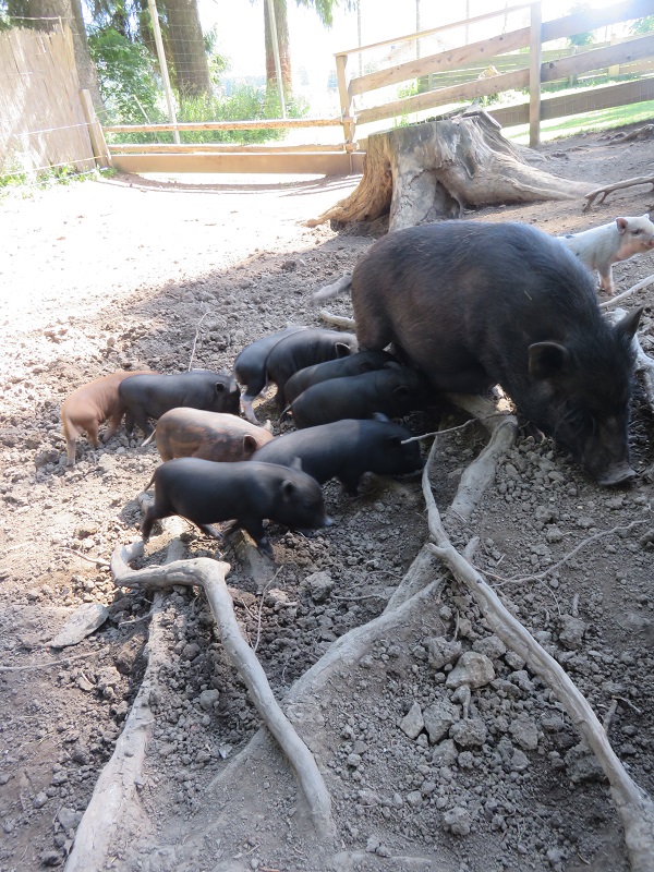 Il tour (percorribile anche in passeggino, tranne quando c’è troppa neve), inizia con i cavalli. Si incontrano poi i cinghiali e i maiali (noi abbiamo avuto la fortuna di vedere un paio di cucciolate, che tenerezza!), ma anche i gufi e gli orsetti lavatori. Sono degli animali incredibili, soprattutto per l’utilizzo sapiente che fanno delle loro zampette, molto simili alle mani degli umani. Ci sono poi caprette del Camerun e mucche scozzesi.