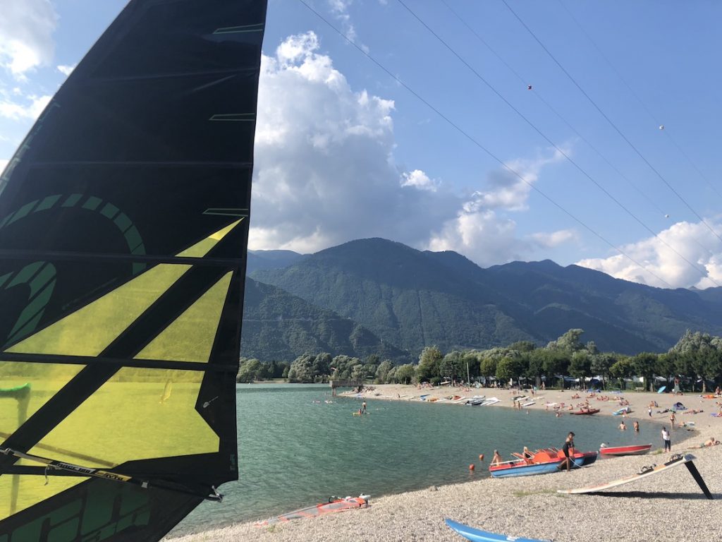 Nella zona nord, quella trentina, ci sono diverse spiagge, ampie e comode. Qui non è difficile noleggiare attrezzatura per potersi poi dedicare agli sport acquatici. A Baitoni, ad esempio, si possono noleggiare pedalò, sup, windsurf e canoe dal 15 giugno al 15 settembre, tutti i giorni dalle 10.00 alle 17.00 (info: Baitoni Wind Bay Tel. 339 2792742).