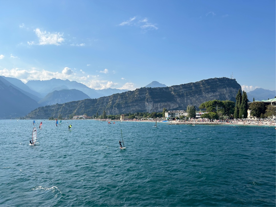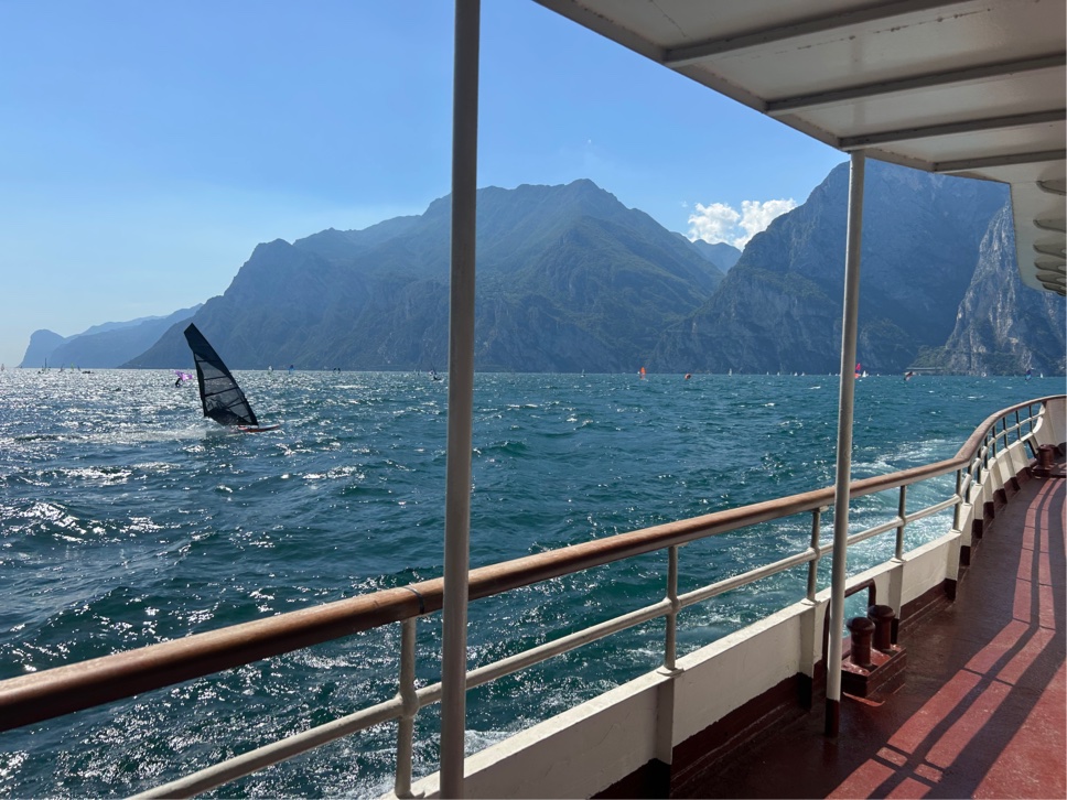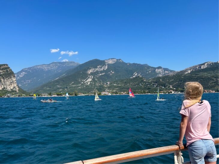 Partendo da Riva si possono raggiungere gran parte dei paesi sul lago. I battelli si muovono a zig-zag, facendo la spola da un lato all’altro del lago. Le tratte più corte partendo da qui sono quindi quelle verso Torbole e Limone, seguiti da Malcesine. Se avete bambini particolarmente attivi vi sconsigliamo una destinazione più lontana. Raggiungere Limone ad esempio richiede circa 50 minuti, una durata che può bastare per una bella esperienza di navigazione. Ci si può sedere all’aperto e godersi il vento, il sole e anche qualche spruzzo rinfrescante, il tutto ammirando il paesaggio e i tanti windsurf colorati che sfrecciano attorno.