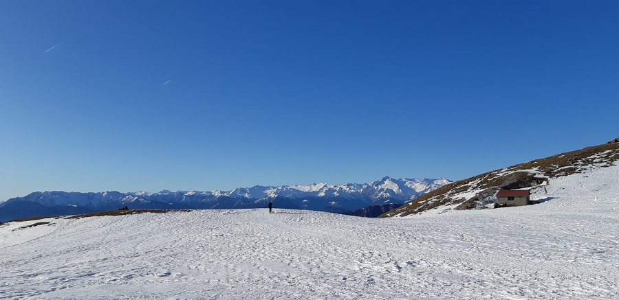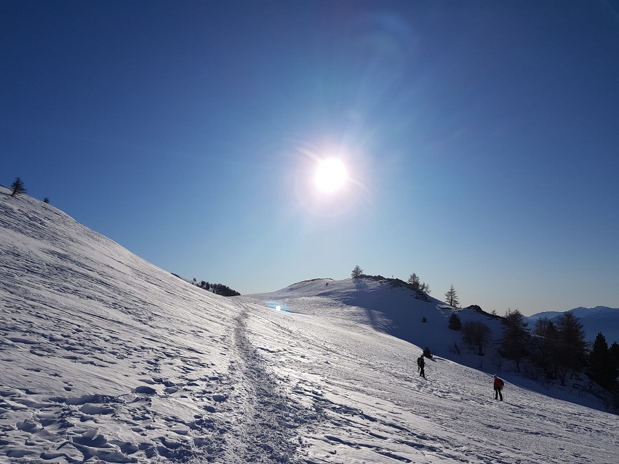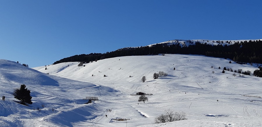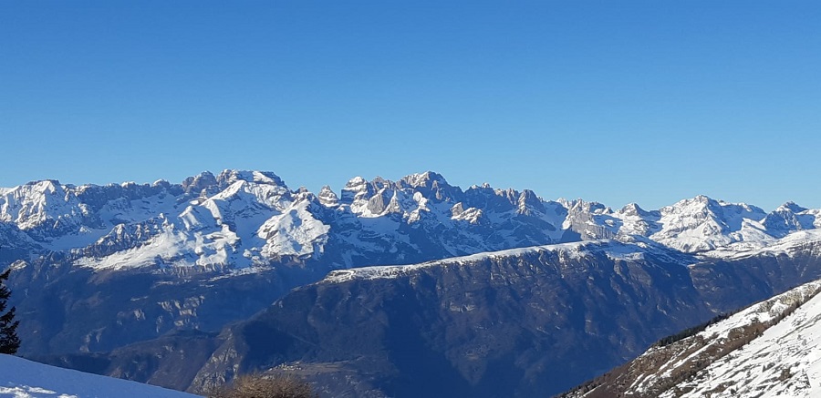 Si continua a seguire la strada battuta e usciti dal bosco continua con una leggera salita fino alla Bocca di Vaiona, per questo tratto ci si impiega poco meno di un’ora. Complice un sole bellissimo abbiamo ammirato un paesaggio innevato davvero unico.