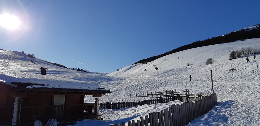 Arrivati alla Capanna Viote si trova anche il campo per i bob e slittini, un ampio spazio dove i bambini sia piccoli che gran possono divertirsi (QUI trovate il nostro racconto).