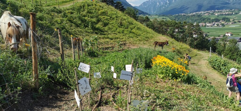 Si tratta di un percorso didattico, geolocalizzato anche su Google Maps, che attraversa le coltivazioni del maso: lamponi, more, mirtilli, uva fraga e giardino aromatico. Durante il tragitto, passerete per il pollaio delle galline, la casetta dei tenerissimi conigli e le arnie delle api. E incontrerete anche due simpatici pony e le pecore del Camerun.
