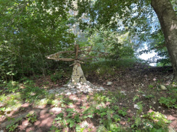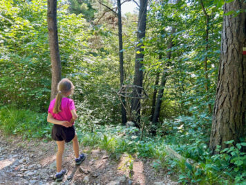 Con i bambini si consiglia di rientrare lungo lo stesso percorso dell’andata. Le opere nascoste nel bosco catturano l’attenzione dei più piccoli rendendo la passeggiata più facile.
