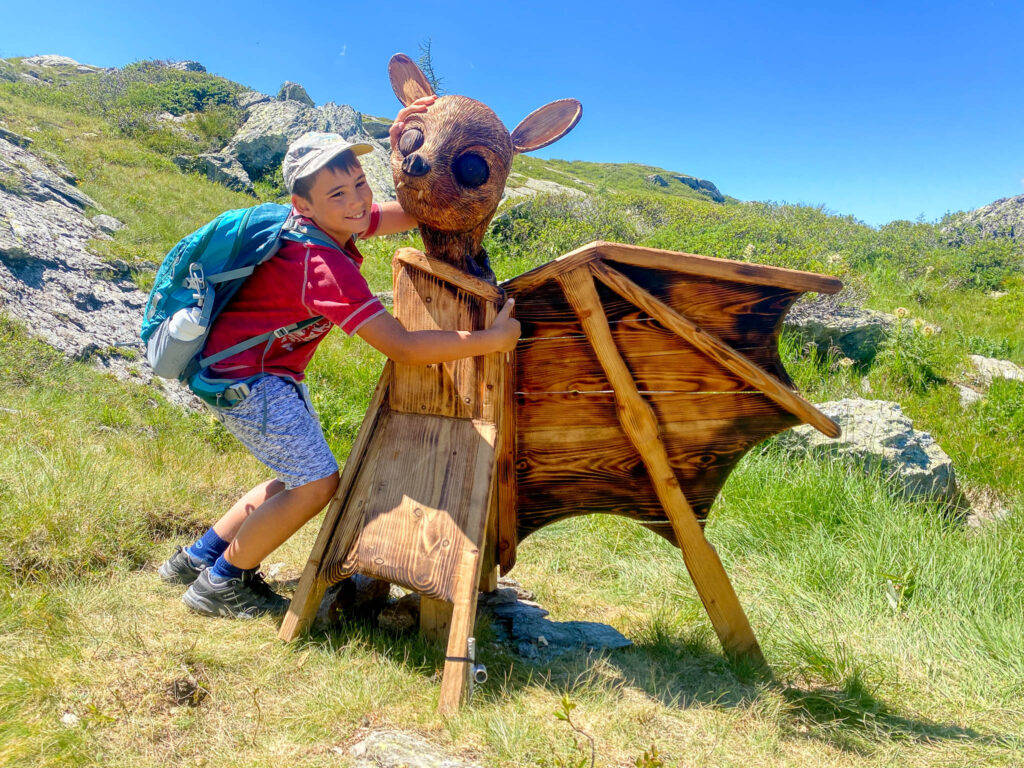 Una delle più belle novità dell’estate trentina 2022 è sicuramente il nuovo percorso tematico appena realizzato sull’Alpe Tognola, alla ricerca della “pietra del tempo”, così preziosa per i nostri amici animali. Un progetto del Trentino dei bambini, con le sculture di Franz Avancini, le illustrazioni di Michela Molinari e il testo della storia, oltre che la grafica, di Francesco Barazza. Un team di cui vado molto orgogliosa!