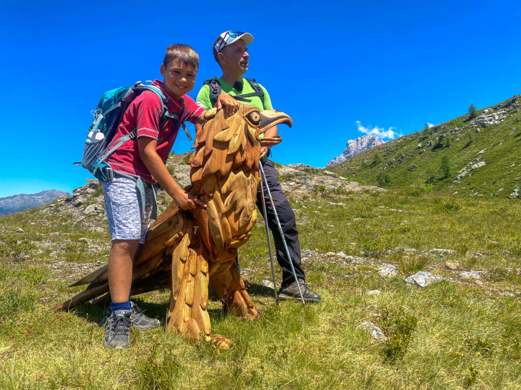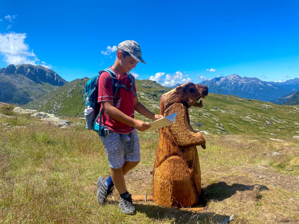 Qui sotto, in compagnia di Otto l’Aquilotto c’è anche Meo Coccia, che ogni venerdì mattina nei mesi di luglio e agosto vi porta alla scoperta del Sentiero delle Marmotte, insegnando agli adulti il Nordic walking, mentre i bambini si divertiranno con il kit per aiutare Carlotta la Marmotta. Costo: 13 € per gli adulti, 10 € per i bambini 6-12 anni e gratuito sotto i 5 anni.