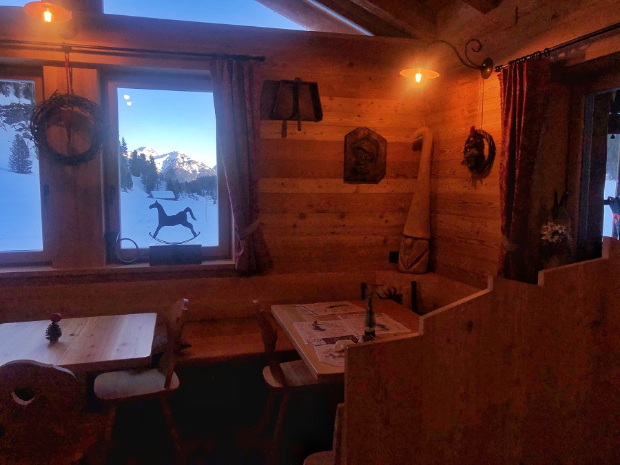 In alternativa, con altri dieci minuti di passeggiata pianeggiante arriverete alla Baita Lino Brach (Apertura invernale dal 21 dicembre – tel. 333 5432449). Di recente costruzione, presenta un ambiente molto carino, tutto in legno, ed offre cucina tipica trentina. Qui potrete gustare deliziosi taglieri con formaggi e salumi, oppure andare sui classici: polenta con coniglio, con il formaggio fuso, con la salsiccia e i crauti. Il menù ruota attorno a questi piatti, buoni e con porzioni abbondanti.